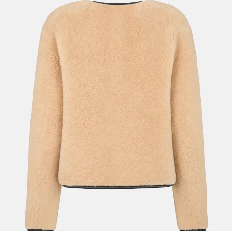 Reversible leather-trimmed camel shearling bolero jacket